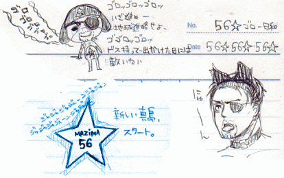 わぁい!!やったよ!!やったよ!!! 晴れて神室町サーチに登録されましたー! よかった…。なんだかちょっといろいろ厳しそうで内心ガクブルだったのですが大丈夫だった…! とりあえず地道にやって行きたいと思うのでどうぞよろしくお願い致します…。 某じぶり最新作の曲が頭から離れません。 ♪ ゴーロゴーロゴロ ヤクザの子ー 神室町からやーってきたー ゴーロゴーロゴロ 真っ黒いー 眼帯 片目のおとこのーこー …楽しい。(ごめんなさい) 『崖の上のゴロー』 良いと思う。(やめなさい) ♪ ゴローゴロー ゴローは真島のゴローゴロー ゴロゴロー ゴローゴロー ゴローは名前の吾朗ーゴロー ゴロゴロー こーのー唇にー 燃える愛を乗せーてー ゴローはあなたを見つめてるー …ww(ごめんなさい) 『ゴローはラブリー』 間違いないwwwww 今日は放置してたらくがきのっけますー 多いので続きで↓↓ 『ゴロー☆56☆ワールド』ってなんか過疎地域のテーマパークみたいで良くないですか(ぇ ねむねむです。よかった。更新できた。 最近オフ友人に恐縮ながらアドレスを晒してしまったのですが正直引かれてないか心配です。 いや。まぁ。良いのですが。どうせ私なんてうんこですから。 これからもっと過激な方向に進むのかどうかは果たして私の気力と体力と良心にかかっているわけですが、 まぁ所詮私なんて惰性と諦めと曖昧の塊ですからどんどん人としての正しい道を逸れていくのでしょう。 だってガッチュン絵描きたいもんね!うんこ絵とかね! 最近小説なんぞを書こうと電車の中とかバスの中とかで背後を気にしつつ携帯を弄くっているのですが、 いやぁ、やっぱり文章って難しいね。 桐真で頑張ったけどもうこれからっていうところで行き詰りましたorz 要は兄さんはやたら口内とか舌とか冷たそうで萌え★ みたいな感じの小説です。低体温ハァハァ いつかできたらうpします… 早く兄さん一人称のエロパートに入りたいなー(現在三人称桐生視点のちゅーの場面) 絵は長年描いてきたから自分の実力もある程度わかっているけど、小説はほとんどまともに書いたことないからまだどこまで書けるかわからないのです。 もしかしたら理想が高すぎるのかなぁ。文章はよく読むのですがやっぱり思ったように表現できないと凹みます。 前テレビでうさうさ占いをやっていたのですが、どうも私は左脳で思考して右脳で表現するらしい。 まぁ、言われればそんな気もしてきます。でもそれが理由で文才がなかったら凹むorz 文才も鍛えれば伸びるものでしょうか。あぁ、でもやっぱり生まれ持ったセンスみたいなものも関係してくるんだろうなぁ… なんだか今週末『みんなで一日8時間勉強しようゼ!!』みたいな糞企画が学校で実行されるみたいですが 勉強ってやりゃあいいってもんじゃないよね。要は集中力の問題だと思うのです。 集中した30分と集中してない3時間は所詮一緒だと思うなぁ。 あと身の回りからテレビだの漫画だの欲望を排除する古典的な方法もどうかと思う。欲望がある中で敢えてそれを堪える強靭な精神力を身につけるほうが重要ではないか。 もっとも過酷なのは睡眠欲という欲望を排除することだけどなwww(in修羅場 心頭を滅却すれば火もまた涼し いくら嫌いな学業といえども、集中すれば驚くほど短時間で多くの知識を吸収することが可能なはずです。 とりあえず私は集中するためにベクトルが教科書に向くのをひたすらに待とうと思います。 だっていやいややってても身に入んないしさ☆ 結局逃げるのですが逃げるのもひとつの生き方ですよね。 今日は三時間しか寝てないのに意外と眠くなくて元気でした。 いつも以上にふにゃふにゃしてたけどねb イベントが終わって、ここのところ私のベクトルはサイトのほうにかなり傾いているので、今日もちょっと頑張って更新とかしちゃいたいと思います。 アクセス解析で気づいたけどやっぱり同盟とかつなげると飛んできてくださる方いらっしゃるんですね…! 申し訳ないです。これから頑張ります…orz きょうのらくがき 今日は桐真とか桐真とか桐←真とか真とか真とかばかり描いておりましたので、めくるめく濃ゆい世界に耐えうる方のみどうぞ。 五朗様への熱が高まりすぎてこんなものを作ってしまった・・・ おうち用のジーンズです。どうせ家でしかはかないしひざに穴あいてたからね。良いのです。 今日はイベントですよー。眠いー。 眠いけどイベント前に更新しておきます。というか本当に何にもつなげてないうんこサイトでごめんなさい。 これからがんばろう。そうだ、月曜日がんばれば良いさ。 とりあえずらくがき 「ゴロー」と鳴きます。 避けなければ悪いことはしてこないのでいじめないであげてください。 ↑のとなりに描いてあったやつ。 ゴロロもMAZIMA56もおぼろげな記憶を頼りに描きました。 今日はゴロー日和!! そして現代文。 こんなですがちゃんとノートとってますよ。 人には見せられないけどな!!11 ゴロワン楽しすぎです。ゴロ