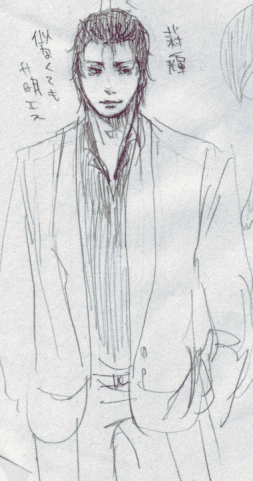 ごめんなさい、神。損ないまくりです。 でも今日は久しぶりにカフェイン取ったからちょっとは眠気に耐えられるかな。(寝ろよ 一日6時間寝てればとりあえず元気なんですが、週のうち半分以上5時間とか4時間が続くと、ちょっと授業中とかバスの車内で意識が飛びそうになります。 ていうか『新・仁義の墓場』の特典映像見てたら偶然にも今日が岸谷さんの誕生日だということに気がついた!!オメデトー!!!vvv わあお。親父と同い年や。 どうしよう。最近好きになる人がみんな親父くらいの年齢なんですがwww力タンとか進タンとかwwww 『オヤジ好き』と言われるのはうれしいけれど『ファザコン』となるとちょっと凹む・・・orz まあいいけどね。現に親父と仲いいし話も合うしね。仲悪いよりいいよね。便利だもんね。(ぉ 今日はずっと胸焼けというか気持ちが悪かったです。昨日五朗タンがおえおえ言ったりあ゛ーあ゛ー言ったり上から下からゲロッたりしたからかなぁ・・・(えぐい) 血もドバドバだったから影響されたんでしょうか。でもここ最近ずっと胃の調子がおかしい。お腹は空くのにあんまり食べられなかったりね。少食になったかと思えば体重は大して変わらなかったりね。でもそんなの関係ねぇー!! ・・・ごめんなさいノリで言いましたまだちゃんとネタ見たことありませんごめんなさいあんまりテレビ見ないんです サイトのほうがある程度まとまってきたらオフ友にも教えてオンでもオフでも仲睦まじく交流したいなぁなどと考えていたのですが、なんだか通常進路を大きく逸れて日本列島を縦断して壊滅的被害をもたらしそうな危惧を抱いております。どうしよう。ウンコ絵とかチンコ絵とかいつうpするんだろう。 いいさ!引かれたっていいさ!どうせ私なんかウンコさ!ウンコウンコ!!(大丈夫か そういえば龍如の便箋を作りたかったけど無理ぽです。やる気起きナス・・・orz ああん。明日劇場版龍が如くDVDが届くよフォオオオォオオォォォォォォオオオオオ!!!1!1!!!!11っうぇwwww あぁ今から死んでしまいそうだ。でも明日はそろそろ部活を頑張らなくては。 なにげなくMONカウントダウン見てたらPerfumeの樫野有香タソに萌えますた・・・ なんかこう・・・遥タンが大きくなったらこんな感じかなとか想像してしまった。髪型とかね。おめめカワユス。 今日は、『新・仁義の墓場』を観ました。 嗚呼。圧倒的。 どうしよう。ますます岸谷五朗が好きになりました。 見終わった後の余韻でなんかダークな気持ちなんですがそれを吹っ飛ばしてハイに語ります。 この作品、あれなんですよね。三池祟史監督なんですよね。 龍が如くの前にも三池監督と岸谷さんやってたんだ。しかもこれがヤクザ役初挑戦らしい。 そして。 これの岸谷さんの役どころが、『狂犬』。 観ればわかるんですけど、あの切れっぷりが。 途中で薬物に走ってさらに加速するんですが、シラフでも十分キてます。大好き。 無表情にグサグサやるあたりが大好き。あのどこか呆けた様な無感動な瞳が大好き。 いやぁ。これを観てしまうともう、龍が如くでの真島の兄さんの役は岸谷さん以外にできないでしょう。 というかどうしても真島の兄さんの若かりし頃を想像してしまいます。きっとこんななんだろうなぁ。 でも兄さんはもっとポジティブシンキングだし情に厚いし卑屈じゃないよね。兄さんのほうが好き。でもこの役の石松も好き。 ああん ハイテンションに語るどころかローテンションになってしまった。 だってしょうがないじゃん。眠いんだもの。 とりあえず明日新体力テストとか糞があるので寝ます。 あ。 『新・体力テスト』 よし、ちょっと楽しみになった。(ぉ きょうのらくがき 眠すぎる。親父が「オトコ香る。」を買ってきてくれますた。明日食ってみよう。体育で汗ダラダラにかいて香りを発してやる!!(きもい 結局今日はお気に入りの整理をしてたら一日が終わってしまった・・・orz 特に同盟の整理をしてました。ああん、力タンとか進タンとか五朗タンの同盟ないのねorz 一輝タンの同盟はあったけどな!11(・∀・) 一部消えてた同盟もあって、でもバナー張りたいので掘り出して画像だけゲトしたりしました。 よぉし、こうなったらパパ同盟作っちゃうぞ☆★ 今のところ予定↓ 毛先同盟 寺島進同盟 ミナミの帝王同盟 劇場版龍が如く同盟 ・・・うん。ちょっと時間の都合で大変かもしれない。でもがんばる。 ポルノのツアーに申し込まなければならないのにこういうことばかりぐだぐだしてしまうorz どっちにしよう。どっちの会場が近いのか調べなければ・・・ つか早くアルバム開けろwwwwwwwww死wwwwwwww なんか来年の春コミかなんかで龍が如くのプチオンリーがやるらしいですね!!! サークル参加は厳しいですが、一般で行くことケテイです(・∀・*) フォォォォォォォォオオオオオ……!!!なんか今からマジwktkなんですがwwwwwwwww て言うか fake star あれ最後「て言うか」って聞こえるなーとか思ってたら本当に「て言うか」だ