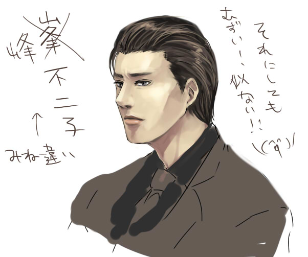 うあああーしんどい。 なんだかすごく気持ちが悪いです。えー。なんでー。 やっぱりあれでしょうか。昨日まで朝6時に寝てたのに今日むりやり朝5時とかに起きちゃったのが駄目だったんでしょうか。体内時計を6時間ずらしてみた。 それにしても腸ならともかく、胃にくると非常にしんどいです。慣れてないもんね。胃の不快感。 どうでもいいけどおえかきを!したい! そして峯はナイスバディ!!!← なんかさぁ…!桐生ちゃんの胸周りと兄さんの腰周りのイイトコ取りみたいな身体だね!!なにあのボンッキュッボンッ…!!! なんかネタが多過ぎて早く吐き出さないと胃もたれです…!!しかしそろそろ改装もしたいのだが…! 拍手レス…!遅くなってしまってすみませんでした…! そして停滞中にもかかわらず拍手を下さった方々…本当にありがとうございます…!! 見て下さる方がいらっしゃるというのは本当に幸せなことです…! これからその気持ちに応えていけるよう、精一杯更新いたします…!! 今日はずっと冷麺漫画を描いていました^^^^ んー漫画って難しいよう。 お絵かきしたいんですが明日は出なきゃならんので今日は夜更かしできん…! 峯が足りません。 どなたか峯を…!峯を描いて下さいませんかァ…!! 峯不足です。しかも自家発電できない…!描けない…!! 峯さんに銭ズラって言わせたい。金持ちになって幸せになるズラァッ…!! とりあえず…もうどうしようもないですがこれから拍手レスを…。 すみません…本当に…。 しかし流石にここ数ヶ月色々すっぽかし過ぎたなぁと思うんですが…なんでだろう…。 多忙も勿論あるっちゃありますが…んー…。 ただこれから、恐らくより慌しくというか余裕の無い生活になっていくと思われるので、放置も増えてくるかも…知れません。 もし動いていなくても、まぁ生きているんだろうと思って頂けると幸いです。 そいえば昨日友人とえちゃした残骸を乗っけておきます。 真島なら例えうんこでも構いません^^ そんな感じでした。みんなありがとう! milkがなんか知らんけどヤマトソングに聞こえてしまう…。aikoちゃんの曲可愛いよね。キラキラくらいしか知らんけど← その辺に居そうなヤマトを頑張って描いてみようと思ったんですが、気持ち悪いことになりました。リアル絵って難しいよね。 でもまぁ彼はめちゃくちゃイケメンって訳でもないし、ちょっとくらい不細工でも…しかし気持ち悪い。口がズレた。目もズレた。 全く意識してなかったのになんかイ・ジュンギに似た…気がする^^^^^ 確かに彼のイメージは面長でつり目のイ・ジュンギなんですが^^ ラストに向かって突っ走った!ぜ!! 昨日続きをやろうとしたんですが、ちょろっとやって疲れて寝てしまった…。 EASYモードにしたらあれだけ苦戦してたのが嘘のようにあっけらかんと勝ってしまった…! なんぞこの差…。 ボスとか弱すぎてラウの格好良い所が全然感じ取れませんでした…^^ そして拾っては使わずに溜まっていくドリンク剤^^^^ なにはともあれストーリーは進む…! 続きからねたばれ チェイスバトルが!できないから!! あんまりにもできないから!!! しかもHARDモードって負けても難易度下げられないっぽいから!!!! もう一回NEWGAMEします^^^^^^ こんどはEASYでサブストーリーガン無視して、とりあえず一通り終わらせてしまいたい…! 24時間プレイは私の体力的にもどうか分からんのですが、とりあえず最短でどんだけかかるかやってみたいです。 Copyright © [ 血と油で煮詰めたスープ ] All Rights Reserved. http://bloodandoil.blog.shinobi.jp/ PR 忍者ブログ[PR]