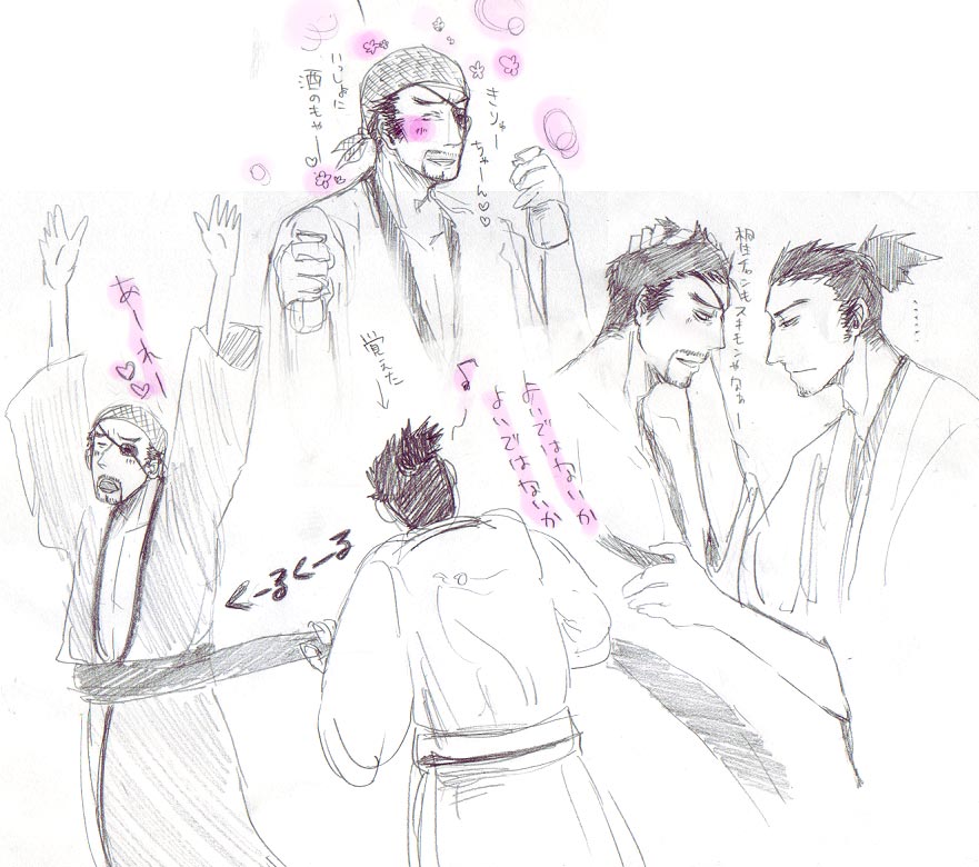やっとクリアしました ![]() ![]() ![]() 結局サブイベに飽きてほったらかしたのでコンプ率は4割程度^^ とりあえずクリア後の感想を反転で一言↓ 締めは真島 その一言に尽きると思います。(えぇー) やっぱりあれですね!いつも思うけど、地球が滅んでもきっとゴキブリと兄さんだけは生き残りますね!! 後細かい感想をちまちま↓。ネタバレはそんなにしないはず…。 最後のとこ、シーンは良いのですが…、ケツメイシか…。(あんまり好きじゃない) やっぱり如くシリーズはCKBが良いな…!!あれこそ『そばにいてやれないパパでごめんね』じゃないっすか…!!? 『なぜ別の生き方を選べなかった』とかもね…!いや、それでこそやっぱり漢なんですがね…!! うあライブ行きたい…!!今年こそは行くぞ…!!剣様…!!!(脱線) 五六八ったんもええけど、やっぱりどっちかっつったら梅たんが良いかなぁ…。 あの可愛さはもう他のゴローズでは出せませんよ…梅たんだからこその魅力なんですよ…!! でも見参の兄さんはやっぱり狂気が足りない…。五六八も梅たんもちゃんと理由があってのっけと戦おうとするし、1真さんとか劇真さんみたいに何度も何度もしつこく突っ掛ってこないし…。 見参、PS3になったからかいろいろ複雑過ぎやせんか…?なんか、そりゃもちろんシリーズを追うごとに難しくなっていくもんだと思うんですが、なんかぱっつんぱっつんで疲れる…。 それにやっぱり私は祇園より神室町が好きで好きで堪らない。ヤクザとして、極道として生きる桐生チャンに兄さんに魅力を感じてやまないのです。 『龍が如く』というゲームと始めて出会ったっていうのもあるし、まだ兄さんに入れ込んで無かった頃の私がぐいぐい引き込まれ桐生チャンという漢の生き様に感動したから、私はやっぱり無印の如くが一番好きなんだと思うなぁ。 何か一番男臭いですよね、無印って。由美ちゃんも殆ど出てきいひんし。 まぁ、一番の理由は私がヤクザ好きのスーツフェチだっていう話なんですがね…!!現代大好き…!! 今回思ったんやけど、宿敵倒してからが長い…!! ええまだ出てくんのー…?って思った…。 しかも最終的に倒すべき敵っていうのがなかなかハッキリしない…。 そういう意味では2が一番ハッキリしてましたよね。途中で誰が出てこようとどんな風に関ってこようと、最終的には龍を決めるんだって、龍司と戦うんだって目的があったし。 見参貶してばっかりですが、やっぱりPS3だけあってムービーは綺麗ですよー。 後、ちゃんとしたムービーと、ポリゴンの簡易ムービーみたいなの二つがあります。 印象的な場面をしっかりしたムービーで演出して、説明的な部分は簡易ムービーを使うって感じなんですが、簡易ムービーも音声有りで自動再生もできるし、そのおかげで結構ドラマ性も高まってると思います。 ただなぁ…。回想ではちゃんとしたムービーしか見れないので、やっぱり全部を録画してムービー集を作るしかない…。そして真島特集DVDを作るしかない…。(お前…) ふいー。とりあえずやっとこさいろいろ片付いたのでこれで描けます…!!!(ゴゴゴゴゴ←紫オーラ) 見参も描きたいですが、やっぱり基本は刈上げ兄さんと短髪桐生チャンで行きますよってに、よろしゅう頼んます…!! ああ…ゲームのほうも完成を目指し…(もうどうしょうもない) 20日の地元イベでは本を…本を…!!(うがー!) とにかく早いとこサイト整理しますほんまにスンマセン…!! 拍手下さった方おおきに有難うございます…!レスは後ほど…!! そんで、懲りもせず鬱を吐き出す。 アカンでッ…これはッッ…!!!!(はぁはぁ) とりあえず狂気度は 五六八様>>>梅たん で間違いないですねwwwwwwwwww やっぱり…ええなぁ…あのニタニタ顔…。 サブストーリーをちまちまこなしつつ本編を進めたい衝動に駆られとります。あああああんアカン。 ちなみに依頼と掛廻と手配帖はやってるけども遊郭一回も行っとりません。 男としてどうかとは思うけどね…。だってかんわええおなごと遊ぶより汗臭い男とからんどった方が楽しいしなぁ…。 天啓得てそのへんので試し斬りするのがえらい楽しゅうです。巴狩りのアクションめちゃかこええ…!小太刀だけ抜くことって殆ど無いから狙わんと出せへんのやけども…。 博打もやってへんなぁ…。ギャンブル好かんし…。金は依頼と喧嘩で集める…。 麻雀も一回やったけど牌が見難い…。しかも最近全然やってんかったから弱卓でも負けた…(切ない) ゲームの合間にパソコンをやるというなんとも目を酷使する私。 もう見えへん様になってもおかしないかもなぁ…。(既に裸眼じゃ歩けない) ゲームで廃人目指したろうとしてたんですが、残念なことに私にはプライベートルームというもんがあらしまへんのでゴールデンタイムはTVを譲らなならんのですね。 ああもう…!早うクリアしてまわんと気持ちの整理がつかん…! 今日は10時間近くガッツリ寝て身体はビンビンに回復した思うたんですが、どうもまだ立ち上がるたびにクラ