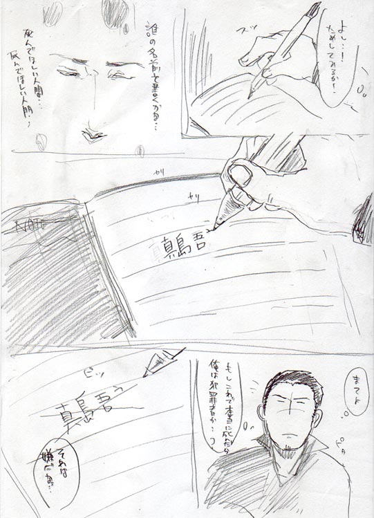 ひっさしぶりに体調を崩しました^^ 夕方仮眠から目覚めたらやたら悪酔いしたみたいに気持ち悪うなってて、3年振りくらいに吐きました(^ω^) そんでおお久しぶりやぁ吐くのって思った以上に力要るししんどいなぁと感動した後晩飯を食ってまた吐いた^^^^ 腹も壊してるのでほんまもんの陸夫になった気分ですww 結局今は食うことをあきらめてみかんとヨーグルトをちみちみつまんではります(早よ寝ろや) でも良いとこやし早よクリアしたいから今夜も控え目にプレイします^^^^ いやぁ…慢性的な睡眠不足と運動不足と不規則な食習慣のかいなく今冬も風邪引かんかったって嘆こうとしたとたんにこれやもんなぁ…。 だんだん頭痛がしてきた思うたら熱まで^^^^でも風邪なんかなぁこれ…? どうでもええですが、嘔吐したときって鼻からも回ってくるやないですか。あれ凄い不快やないですか?喉やったら水でも飲めばええけど、鼻はどないもこないもできひんしいつまでもあのすえた臭気がつきまとうのが何とも…。 『桐生チャン!! ![]() ![]() 』瀬賀様はサーヴィス精神旺盛やのぉこん畜生がッ!!!!!!!!!! アカン!!!アカンわぁ!!!!!梅軒さん可愛すぎるわぁ!!!!!!!!!!! なんやもう五六八たんより可愛いやん…!!!! 毒のない兄さん…なんや無垢な兄さん本来の性質が出とるっちゅうか…!! 見参の兄さんはあれやな、1の兄さんより描写細かなったから顔怖いけど、人物描写も細かなったから2の兄さんよりもええ人やなぁ…! 狂気は殆ど感じられへんけどなぁwwww顔からしてもっと怖い人や思うとったwwww 今までの兄さん、特に劇真さんなんかは愛情と殺意がドカーンって感じやったけど、なんやもう見参は仲良くまずはお友達から始めまひょかって感じやわ…!!!! もう喰っちまえよ!!!!!(暴走) 寧ろ梅軒たんは賊のみんなに喰われとればええよ…!!!!!!!!! 喰ってくんやのうて敢えて喰われるっちゅうね!!押しに押されてしゃぁなくっちゅうね…!!!! とりあえずどえらい幸せですわ(*´ω`) ![]() ![]() ![]() ああもう黒田はんのヴォイスアマアマやぁ~…!!!!! メサイアマジで欲しくなってきた…!!!のっけたんにならメサイアのアマアマヴォイス被せられそうや…!!!!! そんで伊東しゃんがかわええ…!!!!!!テラジマーン!!!!! もゆる…もう伊東しゃんとのっけはできてればいい(えぇ そんで奥手でガードが堅い伊東しゃんにのっけは言うのです。 「いつになったら…やらせてくれるんだよ」 ああもういっそのことはったんに言ってればいい…!!!早く喰っちまえよ…!!!!!!(暴走) とりあえず今夜は徹夜で暴走しますwwww あああああああああああああああ 1・2よりもちょっとお茶目で小悪魔な黒田ヴォイス良い…!!!!!!!!!!!!! 「やっぱり俺の子供かもしれねぇからよ」ってああああんのっけたん何でそんなに茶目っ気たっぷりなの…!!!!! 桐生チャンがちょっと硬派な優等生不良だとしたら之介チャンは輪の中心にいるような割とムードメーカーさんだね…!! のっけたんのちょっと驚くモーションがかわゆすぎますwwww ぎゃー ド放置スミマセッ…!! 何か暫らくやって無いと意欲が無くなるっていうかちょっとオンラインゲームに足を突っ込んでみたり3月には本を出すんだぜ!と意気込んで原稿進めたりしてました。 ちょっと原稿に対するモチベーションが上がってきた感じです。頑張りたい。 あれと思ったらもう明日はケンザーンの発売日ではありませんか。 とりあえず今日は新藤ありのコントローラ(あれ何かおかしい)となんかのケーブルとメモリーカードのアダプターを買わねば。 そして徹夜で体験版やります^^^^ ああん。毛も染めたい。冬コミのとき染めたんですが思ったより色つかなかったんで今度はもっとド茶髪にしたいです。 それよりテレビ周辺を片付けないと何も置けない…!! そういえばいつやったのか思い出せない試験の結果が返ってきたんですが、教科によって偏差値の差が48.3もあるとは何事か。 国語の校内偏差値が80.8だったんですが(これ自慢したい←) 数学は32.5でした。死んでしまえええ!!! どうせもう数字とは縁を切ったので良いのです。でも国語できるのに文才無いとかマジ死にたい^^^^^^ わああん。 ちょっと込み入ってるので週末まで放置します。 らくがきらくがき! 非常に何かもうやっちゃったな…っていうどうしようもない。 字も絵もうんこなので読めないところは悟って下さい。 左→右 この辺で飽きたので中略。 結局こんなになりました^^ とりあえず兄さんがミサミサポジションなのは確定です。 最近はまちさんと色々お話してすっごい切なくなりました。 もうはまさんの口から「オフ本」の響きが聞こえるたびアッー!!ってなります。切ない…!! いつか東京のイベント出たいねって淡い夢を口に出すたびぶるぶるします。ああもう切ない。 …君なら出来る。君にはその資格がある…! とりあえずオフ本だ何だの前にまず本の形をしたものを生み出せるように頑張りたいと思います。 続きは鬱メモです。 すみません。まだ改装終わっとらんです。 というわけ