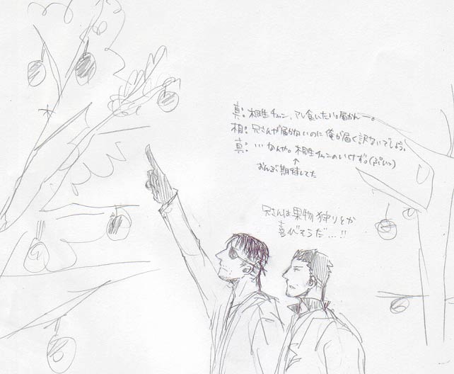 ちょちょwwwwwwwwwおまwwwwwwwwww 何だか調べたら随分そっち系出てるな黒田さん!!(結局伏せない) おおおおおおおああああぁぁあッ!!!どうしよう!!欲しいよ!!欲しいよ!! 私の周りには声優めちゃ詳しい人がいっぱい居てるんですが、正直私はアニメとか殆ど見ないし声優萌はねぇな…と思ってたんですよ…!! しかし!! 桐生チャンは別…!!!! だってあの低音エロヴォイス…!!! しかも羊出るらしいな!! うわああどうしよう欲しい!!HO・SI・I!!!だって桐生チャンが羊数えてくれるんですよ!!もう気分は遥ちゃんですか!!! しかもタイトルが『モテるオヤジのトキメキベッドルーム』って何だそれ!!!! ぐおああああああああああ!!!!!!!!!! メサイアのサンプルボイス聴いてきましたが!!! あまーーーーーーーーーーーーーーーーーーーい!!!!!!!!! 甘いよ!!!甘すぎるよ桐生チャン!!!!!アマアマやぁ!!!!!!!!!(ぉ 『ほぅら…こんな風に滴って…ここまで…びしょ濡れだ…』 ちょwwwwwwwwwwおまwwwwwwwwwwwwwwwwwwwwwwwwwwwうぇうぇwwwwwww なんかスローでアッマアマボイスでした。でもやっぱり桐生チャンだNE☆ うふふふ…!気になる…気になるけど…!! でもやっぱりin桐生チャンな黒田さんの声が好きなんで、とりあえずBLCDの極道シリーズあたりから攻めてみたいと思いますbbb ていうかエスシリーズにも出るの…?気になる…!!本欲しいんですが結局買ってない…。(ヤクザ攻よりもやっぱり受が好きです。でも殆ど無いよね…orzorz) 個人的には…黒田さん受役の何かが欲しいんですが…無いかな…無いのかな…orzorzorz おほーーーー!!! バトラーズの役が…!レイスが…!!なんかすげぇ兄さんっぽい…!!ハッハッハ~♪とかやめてくれwwwwwww 先程友人と生クリームについて話していて、ケーキって美味しいよねっていう話になり、私は生クリームの白さとそれにかけられたラズベリーソースのコントラストの美しさについて熱弁をふるい、そう言えばそろそろバレンタインというベタなイベントがやってきますねという話になり、それからポッキーの魅力について語り合っておりました。 そして私は電波を受信した…! 真 島 の 口 に ポ ッ キ ー 捻 じ 込 み た い 。 アレですよ。 『ポッキーになった僕を食べて… 』 っていうのも萌えますが、いっそのこと 『ほら、俺のポッキー食えよ。美味いだろう?』 っていうね!! でぃすいずさんくちゅあり ![]() ケーキの話で引いてたJちゃん…。 何よ…あなたも同じ人種だと思ってたのに…!もう…知らないッ!! そう言えば友人から聞いたんですが、 きりゅたんの中の人が某ボブゲに出てるってまじすか…! しかもレフトで…!!ww 欲しい!買わねば…!! 眠いー…! 睡眠ってやっぱり大切だ…! 今日は沼津のイベントに行ってきましたよー!うわーうわー!! とりあえず来てくださった方有難うございました!! なんか…イベントに行くと『僕は独りじゃなかったんだ…!』って気持ちになれます最近!! やっぱ沼津にも如く好きさんは居てはるんですね…!!!うわー凄く嬉しい!! 手際悪くて申し訳ありませんでした…!!ポストカードとかなんかもうぐだぐだでスミマセンでした…!!! まさかこんなに早く完売してくれるとは…!(もともとの発行数が少ないだけ) わぁぁぁ!3月にはちゃんと在庫増やして新作もいっぱい作りたいです!!今回休み挟んでたのにちょっとしか出せなかった…!orzorz そんで本も作りたいです!!僕頑張る!!頑張る!!! 女性下着着用兄さんのポストカードとか作りたいです!!(需要を考えろ) そういえばいつも30枚刷ってちょっと残るペーパーが今日は無くなってました…! 皆さんよくあんなオヤジが絡んでるキモイペーパーを取って行かれたな!!(失礼) 最近ペパがぐだぐだなので次回はもっとちゃんとペン入れとかしたペパ出したいです。字も綺麗に書きたいです。でも私丁寧に書いても字がウンコなんだ…!雑か丁寧かとかの問題ではなくて字そのものが汚いみたいです。うん、もう、仕方が無い…。 今日はリアルタイムで龍如してたときによく遊んでた友人と久しぶりに会いました。オフで龍如が語れる数少ない同志です…! 何だかケンザーン欲しいとか言ってたので勧めておきましたw買ってやって嵌ってそして俺に真島を描いてくれ!!! もっとリアルで龍如語れる人が欲しいです…。誰か私に龍如絵描いて…!そして一緒に本とか出して…!!(無茶振り) ああ…!早くケンザーンの予約しなきゃ…!時間が無い…!ポルノライブ結局どうしよう…orzorz 私信>先輩 ここ見てくださってるかわかりませんが…! うわうわうわ!!!もう有難うございます!!!上手く言葉に表せないんですが…!!桐生チャン格好良過ぎるですよはぁはぁはぁッ!!!! あれッ…あれサイトに載せたりしては駄目ですか…!?(自慢したい…!) とにかく有難うございました…!!すっごく幸せになりました!!vvvv あ…皆から頂いた素敵年賀状も載せねば…!わぁーなんか忙しい…!てーんやわんやー!! とりあえずテンション妙なので今日は寝ます…ひえぇぇぇぇ!! ベタ塗りなのは手抜きなんかじゃないです。そういうフラットな